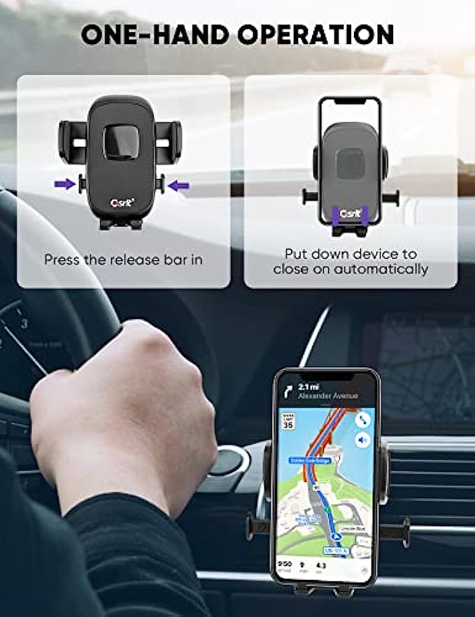 • ?One-hand Operation - Featuring an auto-lock clamp arms that adjusted well to fit any phone in just a single slide! Simply slip your device onto the holder with one hand and it will automatically lock for a strong, stable hold. Bringing you the easiest operation and safest, convenient driving.